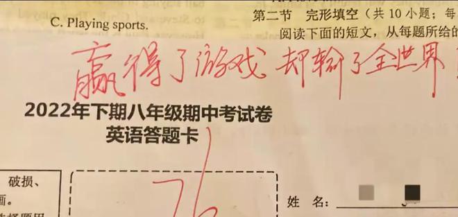 PG平台官方网站“赢了游戏却输了全世界” 这张76分的试卷上 女老师的评语亮了对于学生来说,期末最重要的一件事莫过于考试了,期末考试的成绩也决定了自己能否迎来相对舒心的寒假生活。