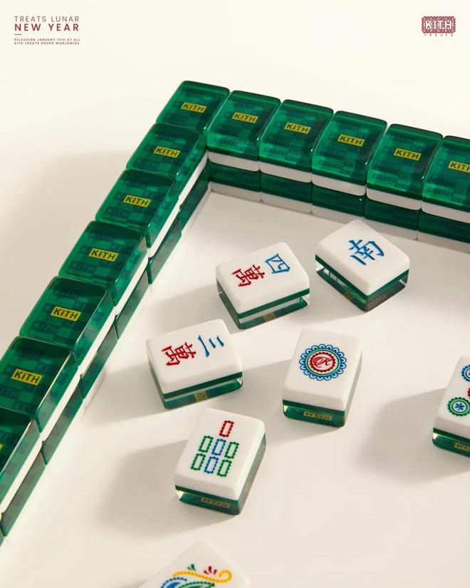 麻将箱由绿色Saffiano皮革打造,而每块麻将的背面也都是透明的Kith Monogram Box Logo,质感规格相当在线。