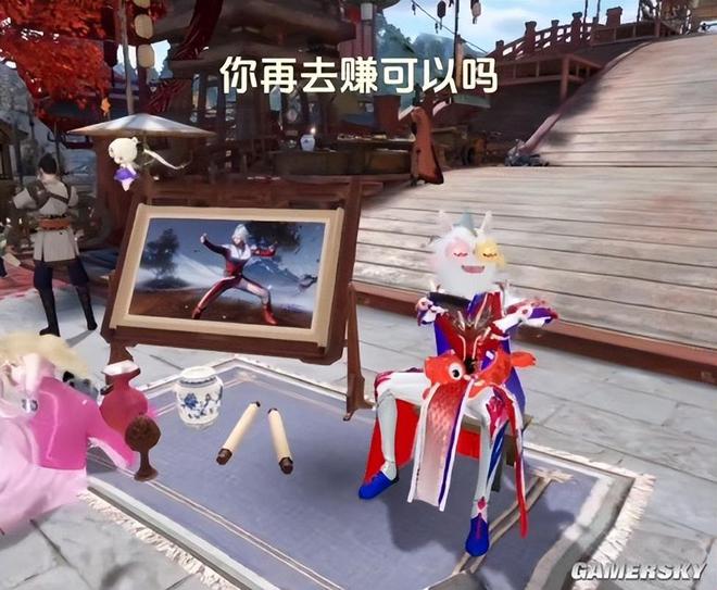 《逆水寒》中的江湖百业系统,在身份上把玩家区分成了不同的职业。而在虚拟世界中继续扮演“打工人”身份的玩家,自然也不能像现实中那样唯唯诺诺。在外观上整活,就成了他们放飞自我的最好方式。因此,你能在汴京城中看到奥特曼在路边摆摊,也能看到美少女战士,在野外的水面上优雅地跳来跳去。