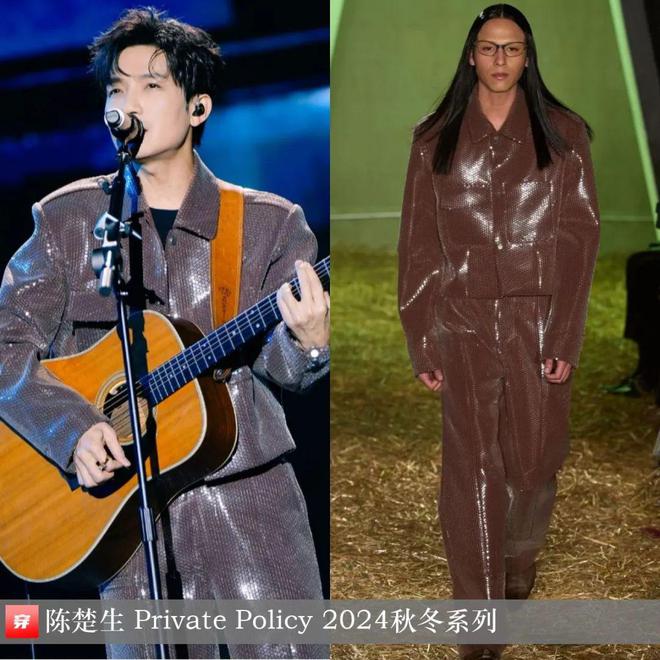 陈楚生,2024南宁Z纪元音乐节。咖色亮片夹克、长裤套装:Private Policy 2024秋冬系列。