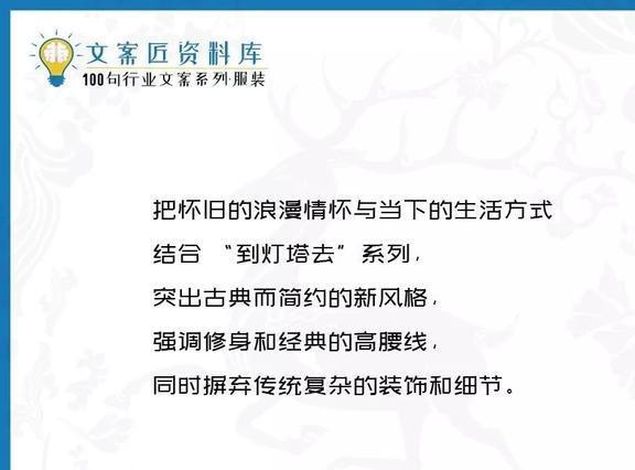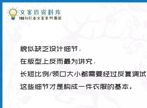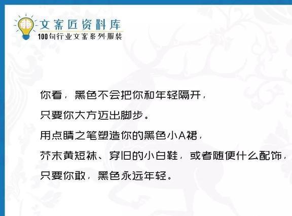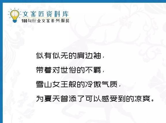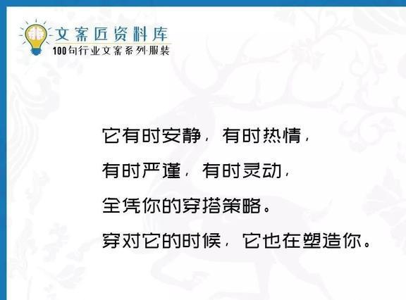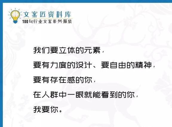 pg电子游戏官方网站100句服装行业好文案给你灵感!(全)100句行业好文案系列服装篇,分享了上篇,今天继续。依旧是来自各个品牌,从资料库挑选100句给你们。