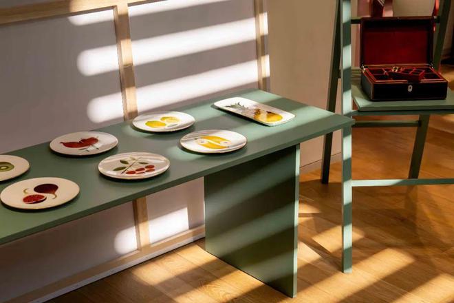 绿色悠然铺展,静谧舒张,如创作间的心灵绿洲。牛仔肌理与丝缎柔光交织出随性的休憩旋律。于繁忙创作间辟一方宁静:Athéna 系列配饰流淌着现代优雅的律动,经典与创新在Togo 小牛皮 Cabas Ancrage 手袋中交融,Kaorumi 白瓷甜点盘、蛋糕盘、水果碗套装细腻装点,Trait d’Hermès 描彩眼线笔与唇线笔在指尖与唇边轻绘色彩艺术。爱马仕匠心独运,诠释灵魂之静美。