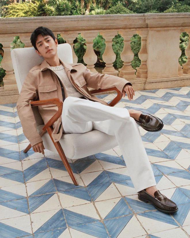 TODS 2025早春系列广告大片中,肖战身着新季夹克,利落廓形搭配自然米棕色系,内搭质地精良的米白色针织衫,纯白休闲长裤与黑色经典乐福鞋相衬,完美诠释实穿休闲与奢华品质。行驻之间,以绅雅身姿勾勒风格轮廓,定格南意大地的明媚瞬间。