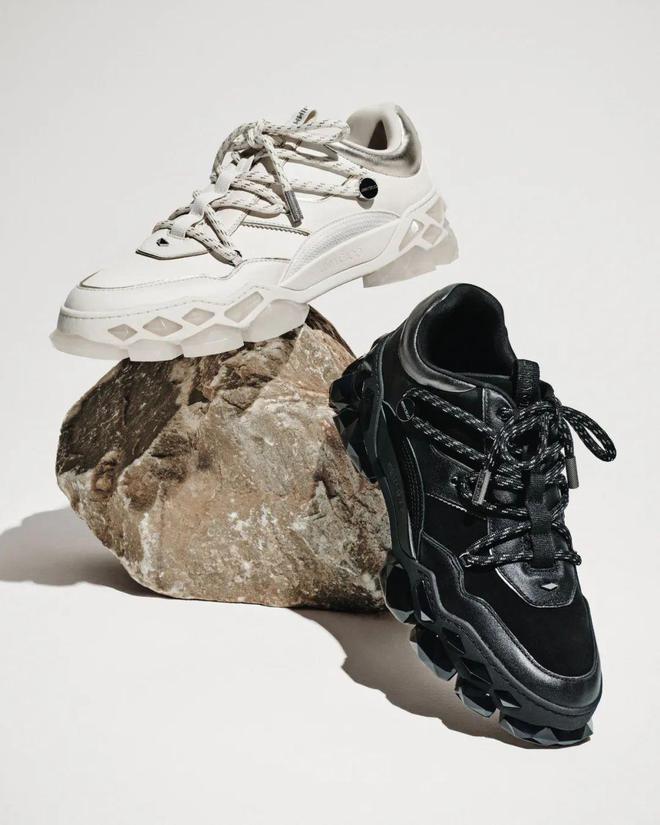 独一无二如同颗颗璀璨钻石迸发生长的名贵树脂鞋底,极具立体雕塑感,令人联想起 JIMMY CHOO品牌标志性元素:将华美与实用巧妙结合的多棱钻石群。柔软的高科技皮革鞋面因运动风格细节愈发彰显与众不同的质感,让 DIAMOND 无限休闲鞋成为本季的时尚宣言。