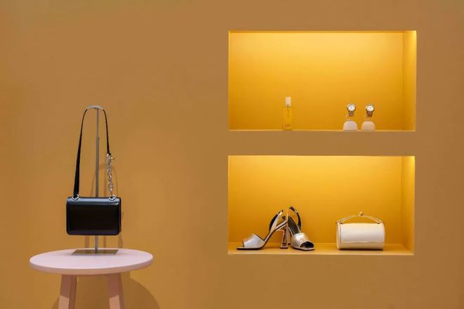 棕色之廊宛如夜幕低垂温暖而深邃的背景,Boucle Sellier Inflexible 系列珠宝与腕表于暗色中绽放异彩。光与影的交织中,印花山毛榉木 Animaux blocks 撞柱游戏、Box 小牛皮 Cliquetis 手袋、“正在接通中”(Please Hold The Line)100 厘米羊绒配真丝男士方巾勾勒的几何线条描绘出精致的造型,将灵感凝练为触手可及的艺术,于棕色空间中焕发静谧格调。