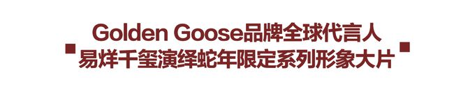 Golden Goose倾情呈献全新蛇年限定系列,形象大片由品牌全球代言人易烊千玺倾情演绎。一道婉蜒红光如蛇般灵动,与易烊千玺及Golden Goose单品巧妙互动,优雅呈现蛇年所寓意的智慧、魅力与灵感。全新蛇年限定系列,将文化符号融于现代设计中。